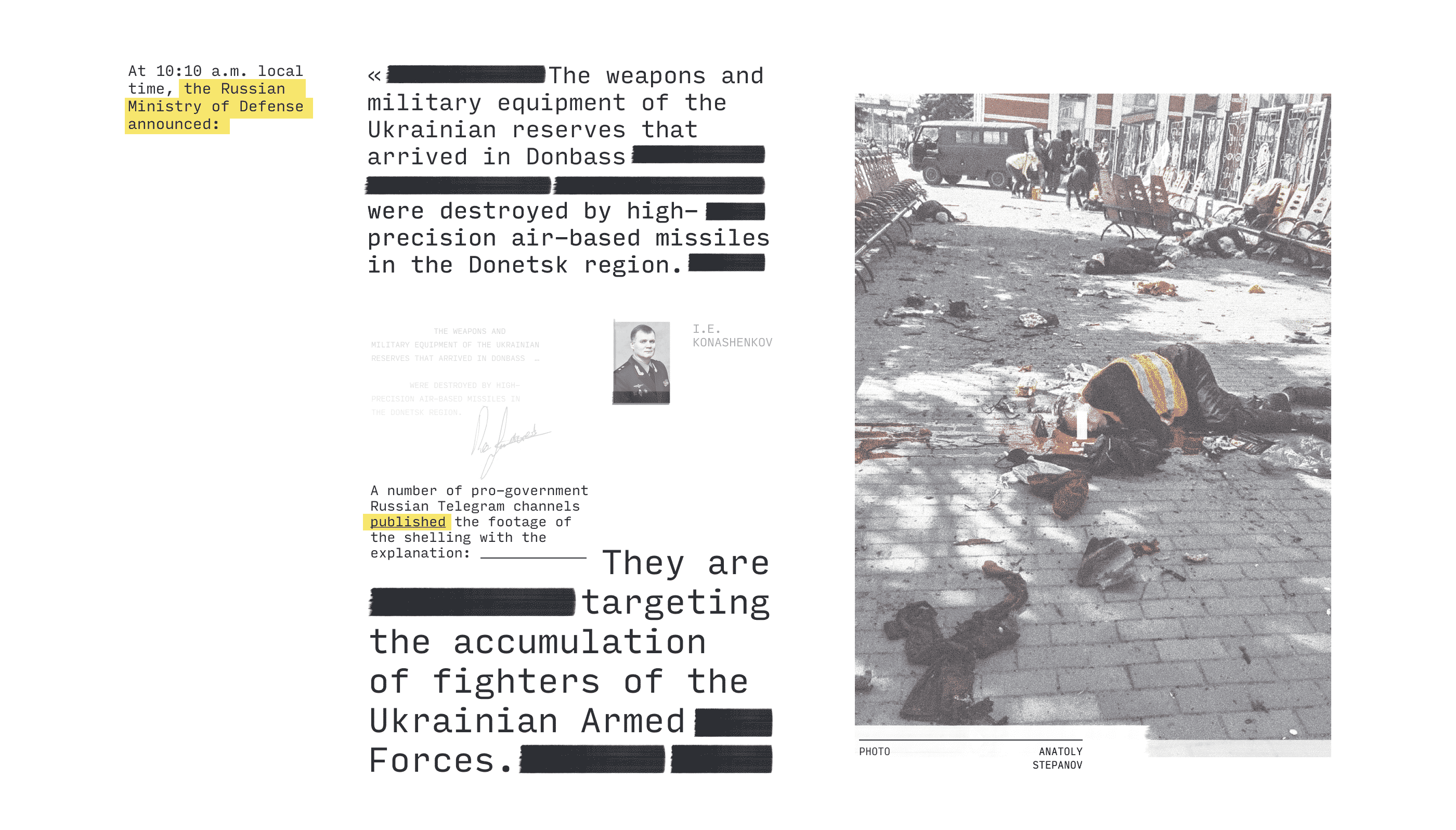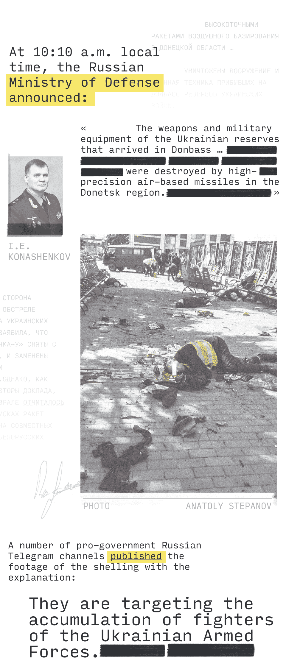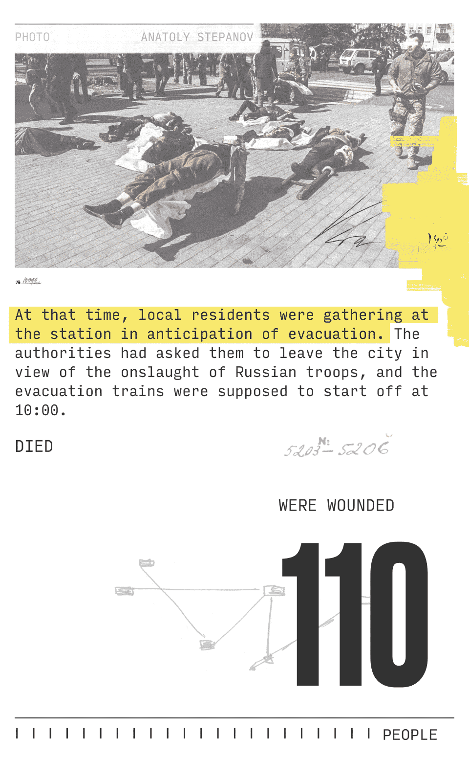 Therefore, at a certain point, people began to be afraid to help. So I got wounded in the stomach after the second blow when the plane returned. Unfortunately, no one helped me, and I went to the hospital myself. When I was walking, I saw several adult men who could not move because of their injuries. When I came to the hospital, there were a lot of wounded people there, and those with the most severe injuries were taken to the hospital. I saw a girl about seven years old who was wounded in the chest area, and I saw how the doctor took her into the operating room, and then I don't remember anything, because I lost consciousness. I woke up already in the ward.