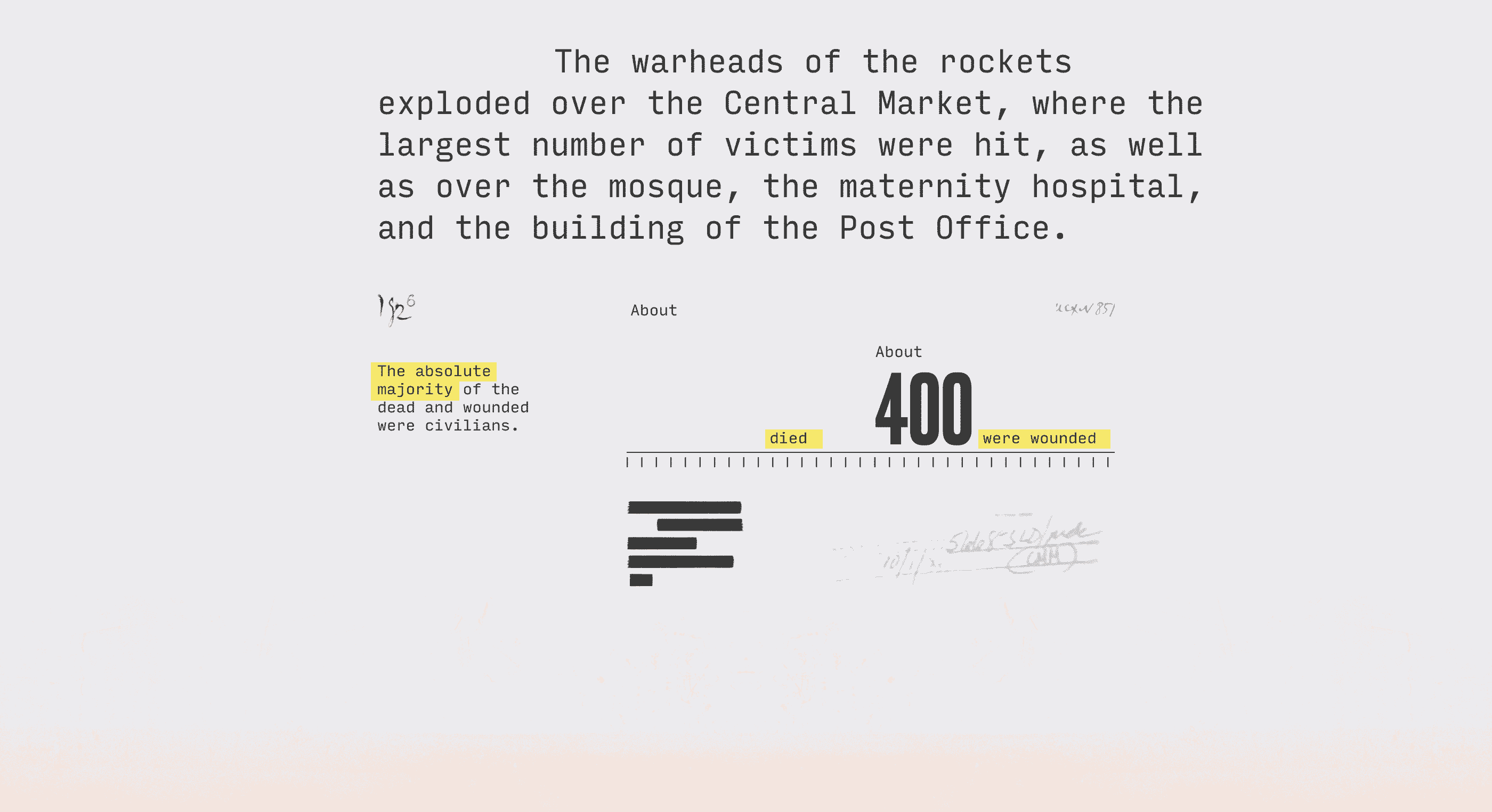 Therefore, at a certain point, people began to be afraid to help. So I got wounded in the stomach after the second blow when the plane returned. Unfortunately, no one helped me, and I went to the hospital myself. When I was walking, I saw several adult men who could not move because of their injuries. When I came to the hospital, there were a lot of wounded people there, and those with the most severe injuries were taken to the hospital. I saw a girl about seven years old who was wounded in the chest area, and I saw how the doctor took her into the operating room, and then I don't remember anything, because I lost consciousness. I woke up already in the ward.