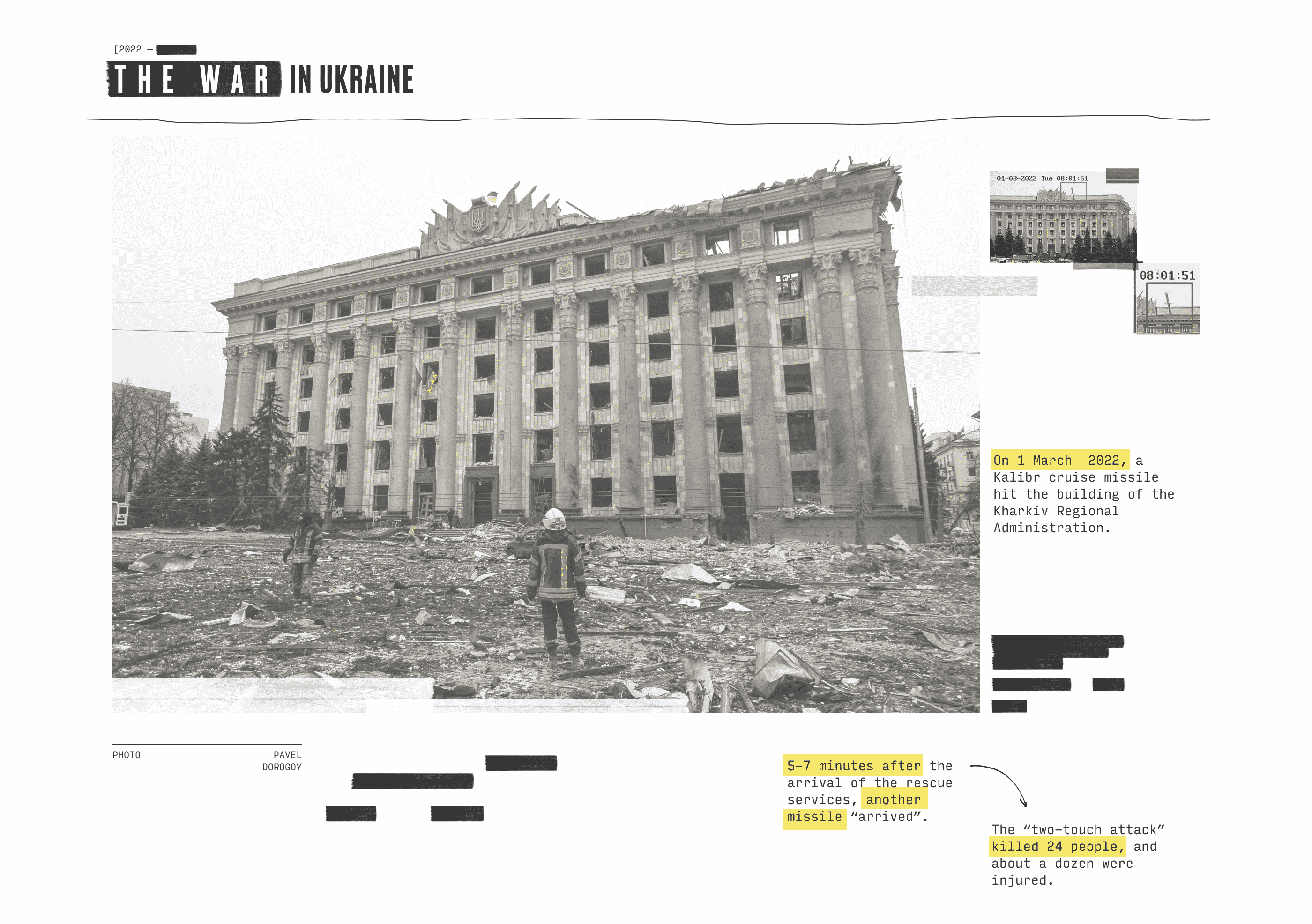On September 25, 2016, Russian aircraft bombed the city with cluster bombs. When the first blow occurred, I took the camera and ran to the place. But there was such a tactic of the bombers: to drop a bomb, and when people run to the place of impact to help the wounded, the plane returns and strikes again.